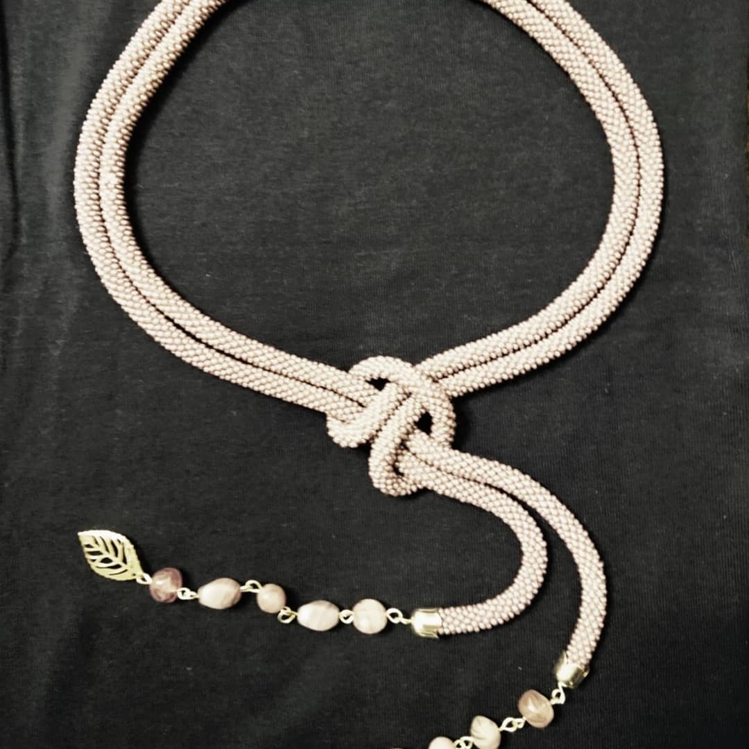 Лариат - это длинный жгут из бисера, который можно завязывать разными способами... Вчера довязала весь бисер на нитке... Поругалась на себя, что поленились нанизать все сразу... Сегодня весь вечер опять нанизывала, ещё чуток осталось...